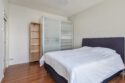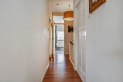 Aan de achterzijde bevinden zich twee slaapkamers, waaronder een ruime master bedroom. De tweede slaapkamer heeft openslaande deuren naar het zonnige achterbalkon op het westen, waar je in de middag en avond van de zon kunt genieten.