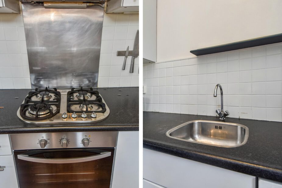 Via het verzorgde portiek bereik je de entree. Binnenkomend valt direct de ruime, lichte L-vormige woonkamer op, met een sfeervolle erker en toegang tot het knusse balkon aan de voorzijde (oosten). De open, nette keuken is voorzien van alle gemakken: gaskookplaat met afzuigkap, oven, vaatwasser en een koel-vriescombinatie.