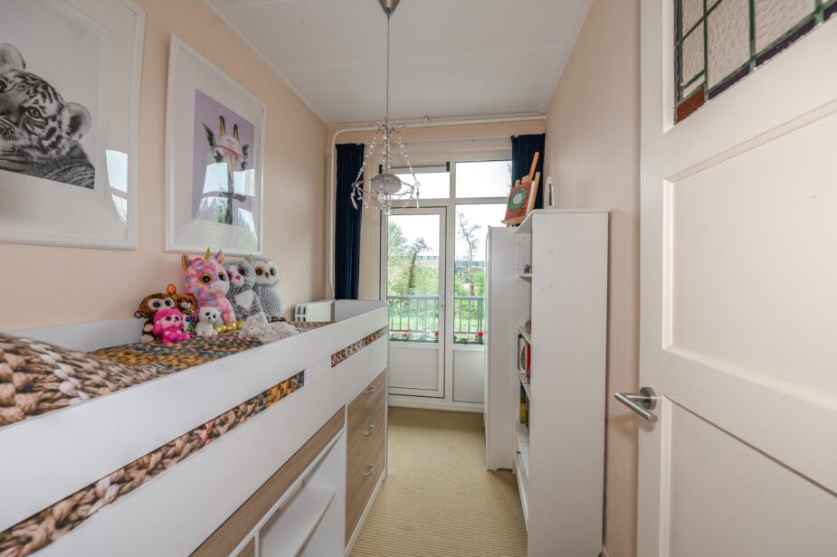 Het appartement beschikt over drie slaapkamers: twee slaapkamers aan de voorzijde beide met toegang tot het balkon aan de voorzijde en een ruime slaapkamer aan de achterzijde met directe toegang tot het achterbalkon. Aparte keuken met gaskookplaat, oven, afzuigkap en vaatwasser. De nette badkamer is voorzien van een douche, een wastafel en wasmachine/droger aansluiting. Er is een separaat toilet aanwezig.