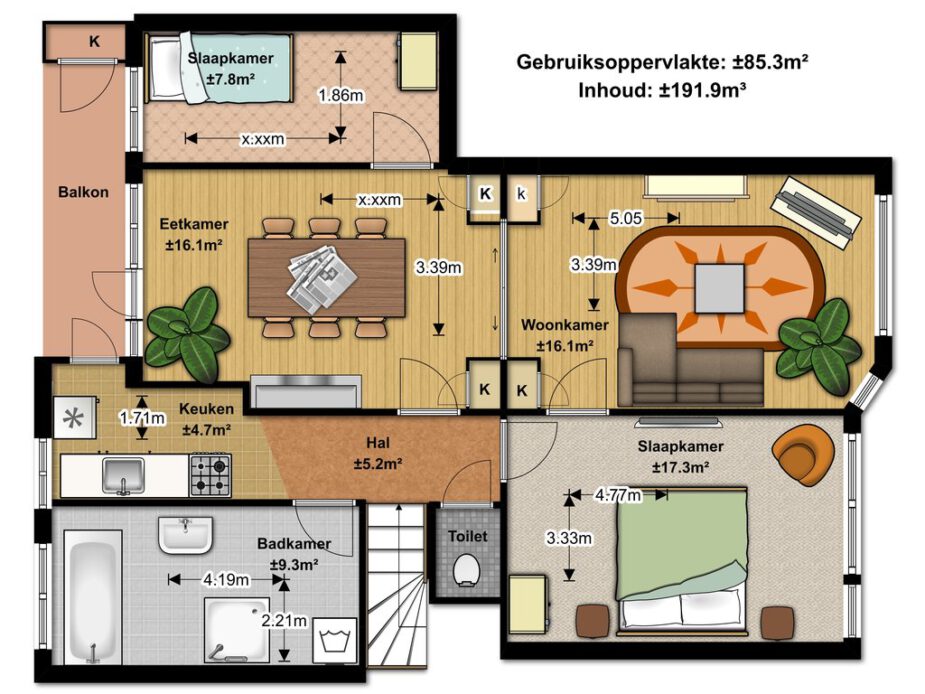 – Woonoppervlak circa 85 m2