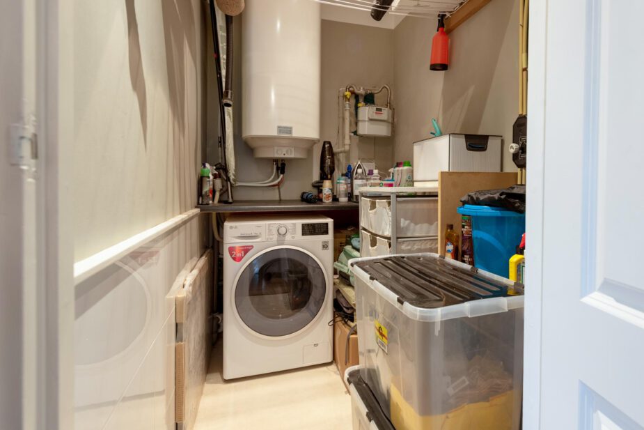 Apart toilet in de gang. Naast de badkamer is een handige wasruimte met aansluitingen voor de wasmachine en droger.