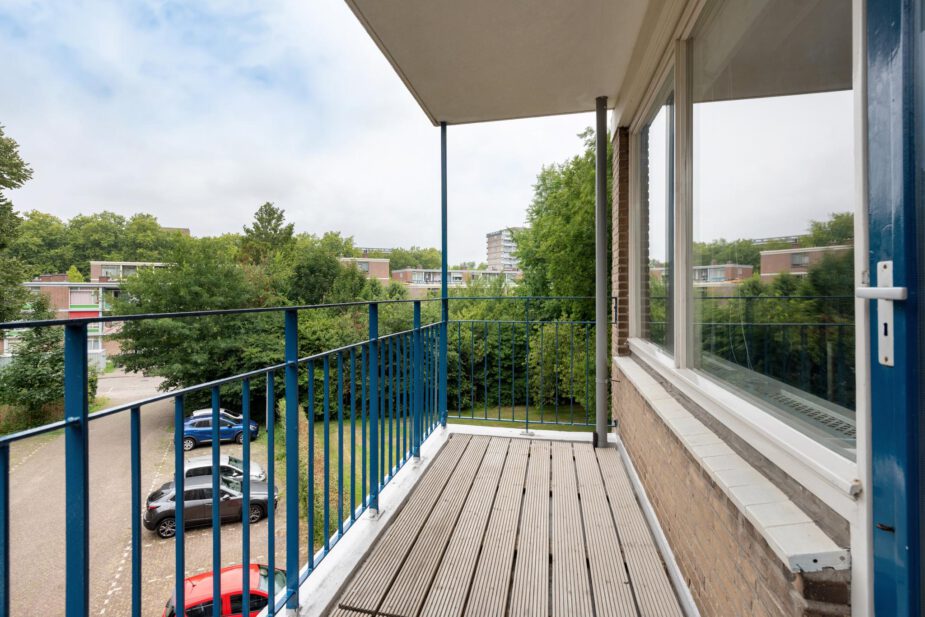 Bijzonder mooi hoekappartement op de tweede verdieping van een goed onderhouden appartementengebouw met drie slaapkamers, veel bergruimte, groen uitzicht en twee balkons.