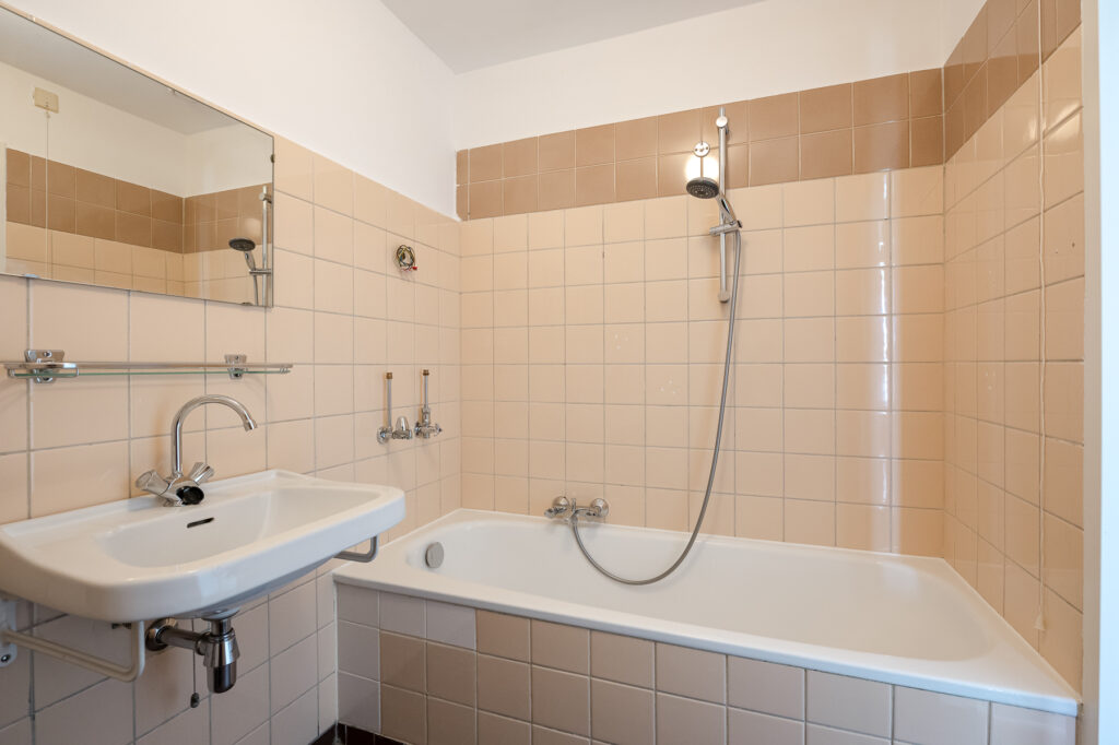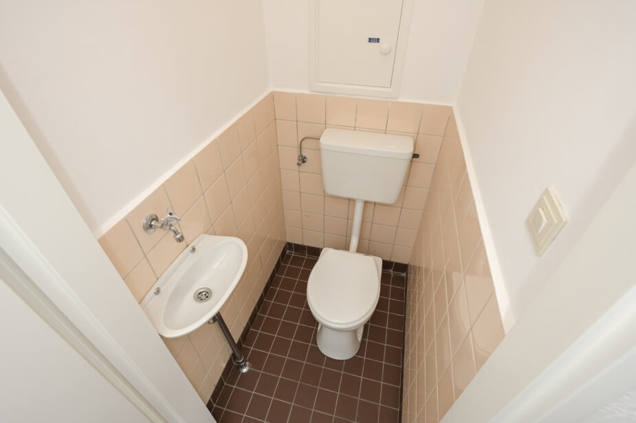 De badkamer is uitgerust met een douche, een wastafel, een elektrische boiler en een aansluiting voor de wasmachine. Het toilet is apart en vanuit de hal bereikbaar.