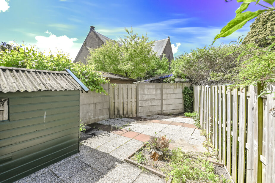 De ruime achtertuin, gelegen op het zuidwesten, is een absoluut pluspunt. Hier geniet u de hele middag en avond van de zon.