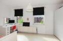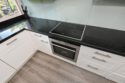Open keuken aan de voorzijde met een moderne opstelling voorzien van: koelkast, magnetron, oven, vaatwasser, inductiekookplaat en afzuigkap.