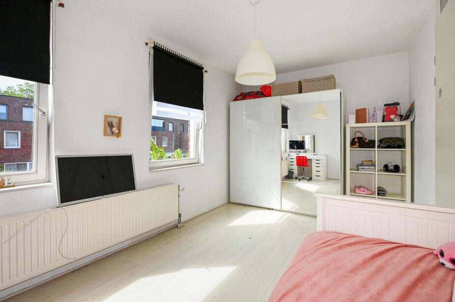 Een ruime, goed onderhouden woning met maar liefst zes kamers, een zonnige tuin en gelegen in een kindvriendelijke, autovrije hof. Dankzij de uitbouw op de tweede verdieping beschikt deze woning over een royaal woonoppervlak van ca. 142 m². De woning is geheel gasloos en wordt verwarmd via stadsverwarming.