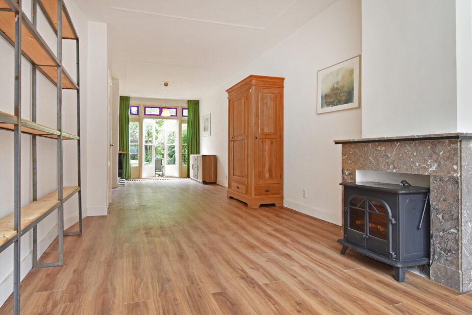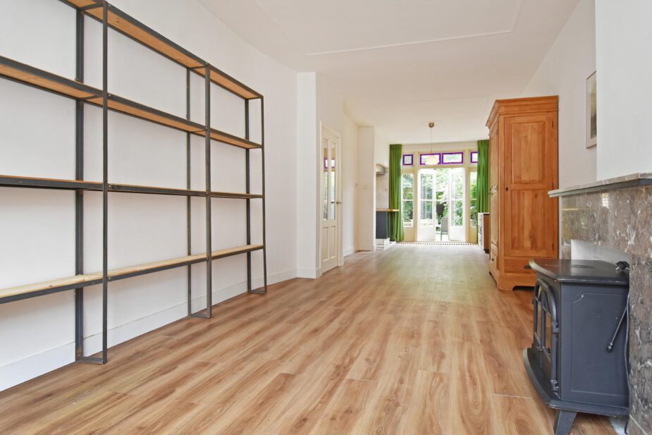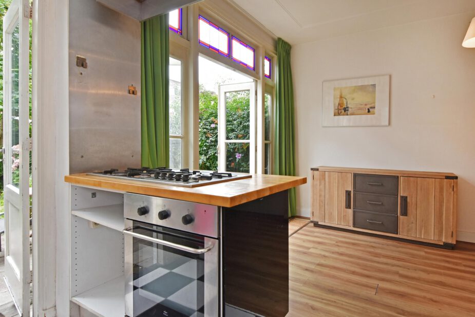 De ruime woon-/eetkamer heeft aan de straatzijde een gezellige erker, aan de achterkant openslaande deuren naar de tuin met ruim terras. Er is een mooie keuken met o.a. een kookeiland met gasfornuis en afzuigkap, houten aanrechtblad, elektrische oven, koel-/vriescombinatie en vaatwasmachine. De tuin is groot genoeg voor zowel een gazon als een groot terras, waar gemakkelijk een lounge set en een eettafel op passen. Verder is er een ruime schuur om de spullen in op te bergen.