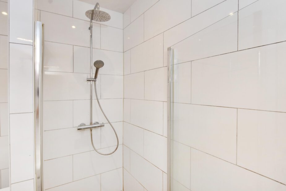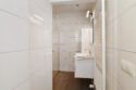 Aan de voorkant bevindt zich een ruime slaapkamer, aan de achterkant een slaapkamer met deuren naar de tuin. De badkamer is mooi, met een douche, dubbele wastafel en voldoende ruimte voor een badkamerkast, wasmachine en droger. Apart toilet.