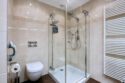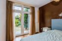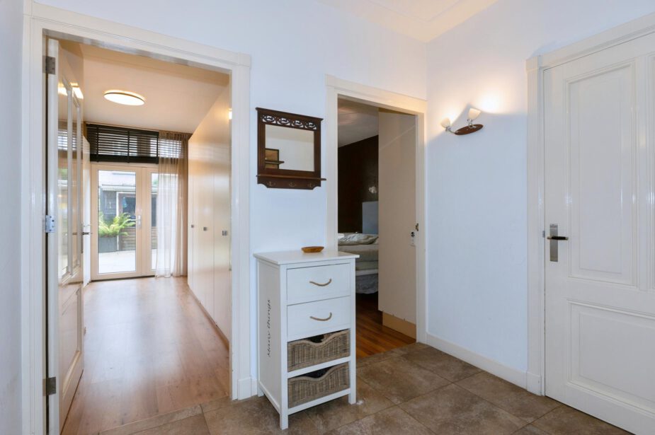 Indeling: Entree, vestibule en ruime hal. De royale, lichte woonkamer strekt zich uit van de voor- tot de achterzijde van het appartement, in de achterkamer de moderne keuken uitgerust met een keramische kookplaat, oven, combimagnetron, warmhoud la, close-in boiler, koelkast en vaatwasser en beschikt over openslaande deuren naar de riante achtertuin, voorzien van een houten berging. Woonkamer, hal en keuken zijn afgewerkt met vloertegels voorzien van vloerverwarming . Twee ruime slaapkamers aan de achterzijde en hebben eveneens openslaande deuren naar de tuin. De derde slaapkamer is aan de voorzijde. De badkamer is voorzien van een douche, toilet, dubbel wastafelmeubel en handdoekradiator. In de hal bevindt zich nog een apart toilet en een deur naar de wasmachine/droger aansluiting en de trap naar de kelder.
